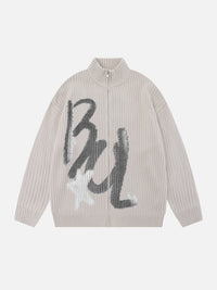 BU STAR - Oversized Graphic Zip Up Sweater