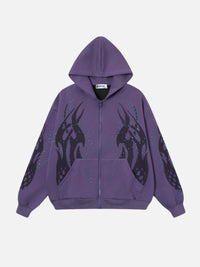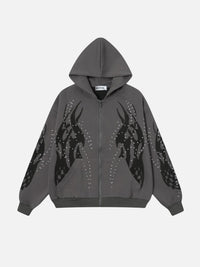 FIRODA - Oversized Rhinestone Zip Up Hoodie