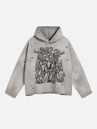 STATUES - Oversized Cropped Print Hoodie