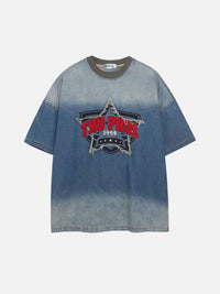 TRU PROS - Oversized Denim Embroidered T-Shirt