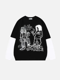 WINCEN - Oversized Print Long Sleeved T-Shirt