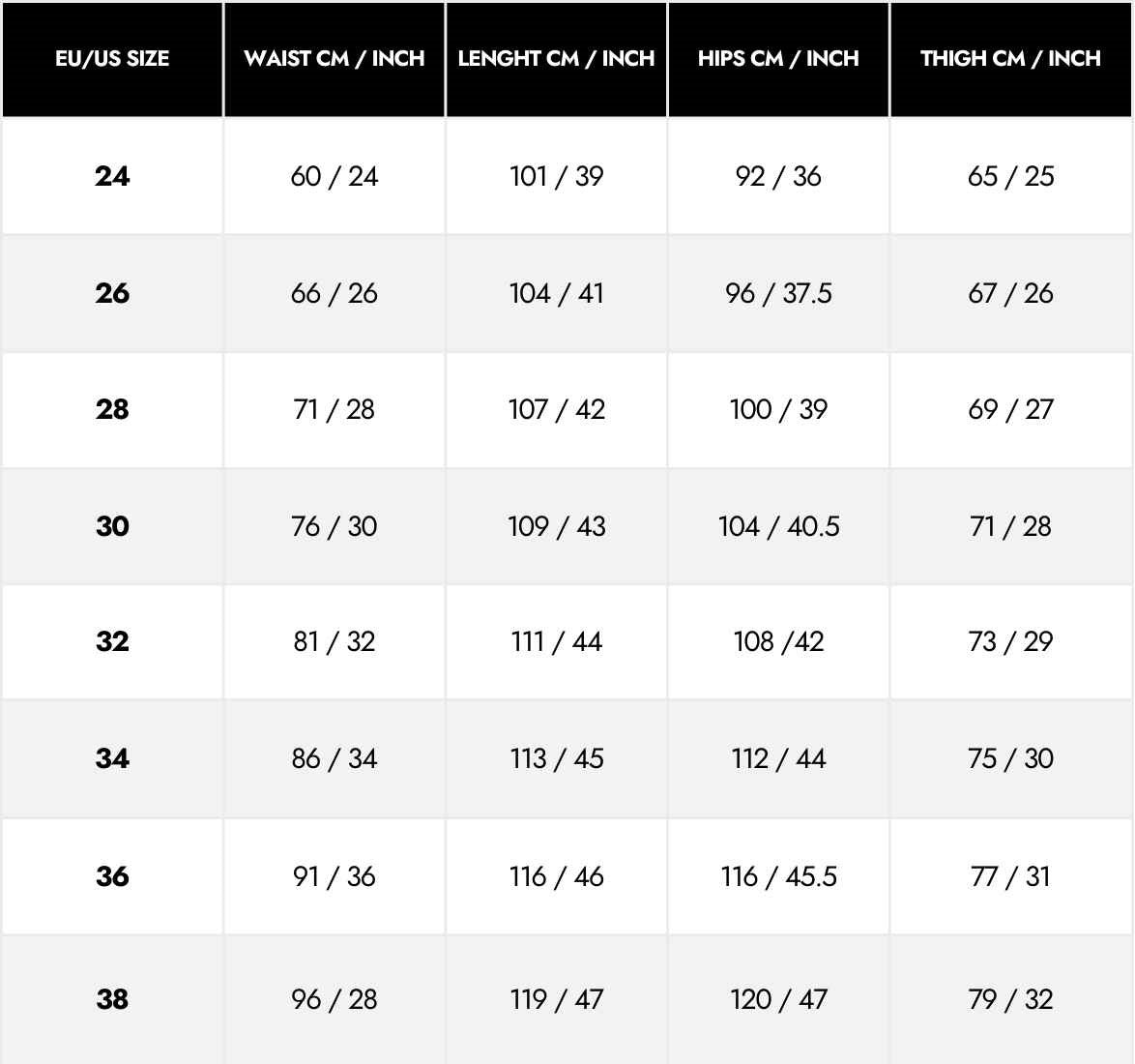 SIZE CHART